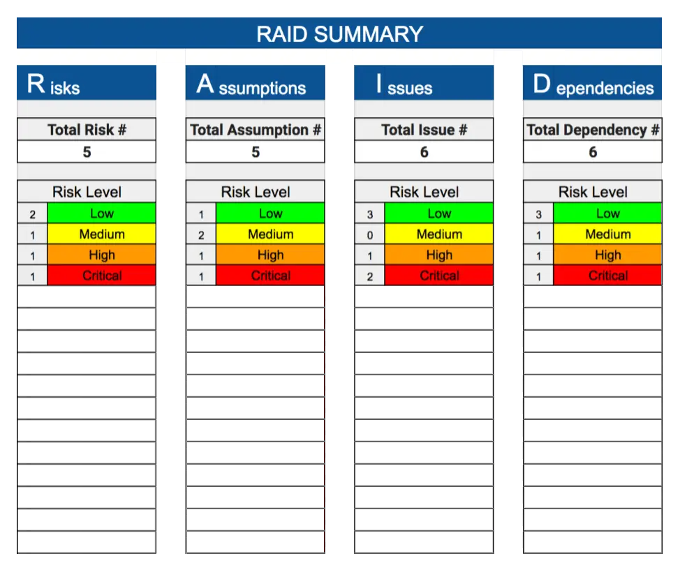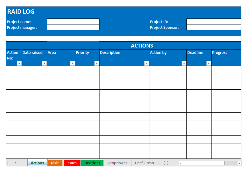 Everyone wants to make their project successful and, for this purpose, a raid log template helps you in a lot of ways. It deals with four major segments of any project and these are: calculating risk, understanding assumptions, monitoring issues and making decisions. This log helps individuals and managers to monitor each and every single step to complete a project accordingly to the project plan. Moreover, it helps you with identifying risks, assumptions, issues and dependencies. The raid log shows you a clear way by following which you can easily accomplish the given project. This way, you can easily identify the activities, individuals and events that will impact on the completion of any project, and you can then make your plans accordingly. But finding a perfect and professional raid log template is quite a difficult task. This is because it is the best practical tool for managing your projects. The raid log provides transparency in all aspects of a project, making it possible to stay aligned with the updates of any project.