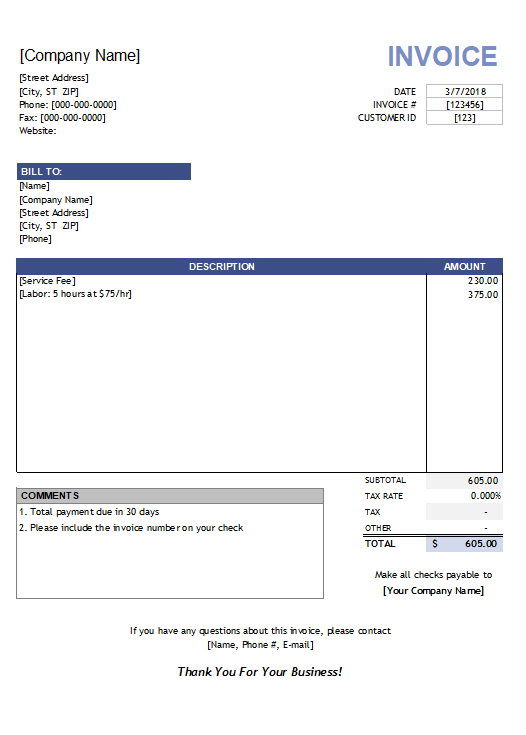 The service invoice template is a commercial document that includes all the details pertaining to the services that are provided by the company or individual. This document holds great importance and is used to keep the record of the transaction. Moreover, the service invoice is prepared between the consumer and the service provider. It summaries the information related to services, which mainly includes the services availed, name of the service provider, date of transaction, unique registration and tax identification number. In addition, this invoice is a crucial part of documentation that is used for the purpose of management. Moreover, one of the most important and basic purposes of having an invoice is to keep the record of day-to-day transactions and protect this record to check the authenticity of any claims made by the client.